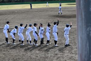 1試合目、ピッチャーは吾郷君→一森君のリレーで6回1失点に抑え、打線は岩谷君の3打席連続ヒットや小倉君のランニングホームランなどで着実に加点できました。