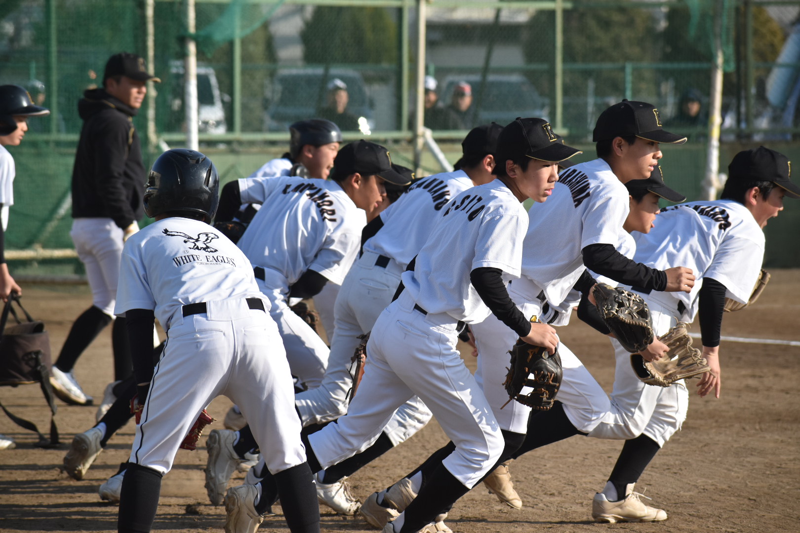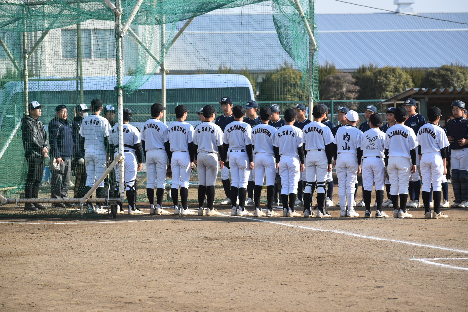 この日は晴天に恵まれ絶好の野球日和、いよいよ23日から始まる春季大会への弾みをつけるべくチームの仕上がりを確認しながら総力戦で3試合行いました。
