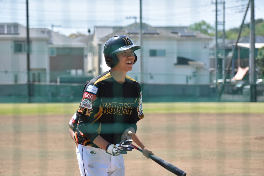 試合は初回から小平打線が爆発します。1回裏、先頭の井上君が四球と盗塁でチャンスを演出すると、4番藤堂君の適時打で先制。さらに押し出しや相手の隙を突く走塁で加点します。その後も6番原島君が四球で出塁後、後続の四死球で三塁まで進むと、暴投を見逃さず生還。初回に一挙4点を奪い、主導権を握りました。